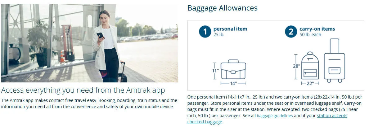 Baggage Shipping to Your Destination: Save time and reduce hassle by letting Amtrak handle your heavy luggage. "Luggage Free" can conveniently and reliably ship your baggage to your destination.