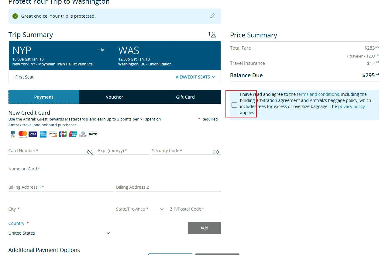 Pro Tip: You can register as a member on the Amtrak website, or you can continue as a guest without registering. Generally, we choose electronic tickets, which will be sent to us via email. You can print them out or simply show the ticket QR code to the conductor at the station, which is very convenient.