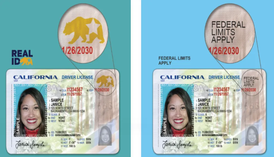 Real ID is an enhanced driver’s license or ID card that meets federal security standards. In California, you’ll need a Real ID to board domestic flights and access certain federal buildings. You can easily recognize it by the star in the top corner of the card.