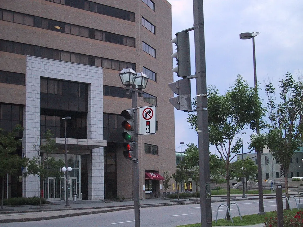Center: Check the "Blank-Out" sign (next to the signal) to see if a "No Turn on Red" message has suddenly illuminated.