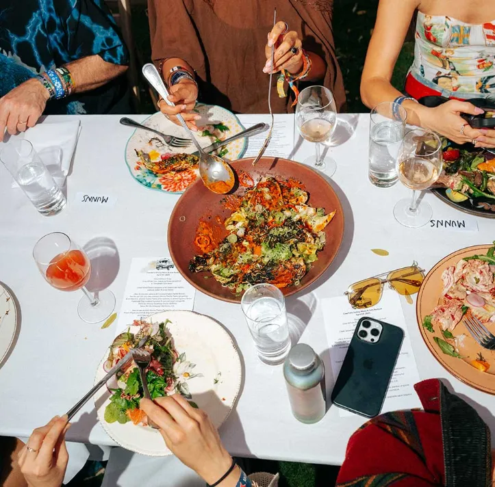 One of Coachella’s most unique food events is Outstanding in the Field, a ticketed four-course, family-style dinner set in the VIP Rose Garden at sunset. This seated meal is prepared by celebrated chefs and paired with wine, celebrating local produce and culinary craftsmanship — a distinct experience from regular festival dining.