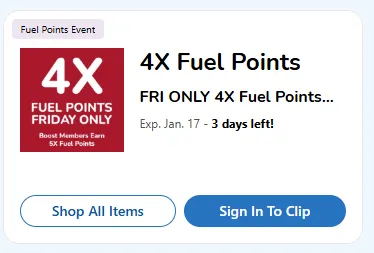 Example: Buy a $250 Amazon gift card during a 4x event. You earn 1,000 points instantly, which translates to $1.00 off per gallon. You haven't spent any "extra" money—you've simply pre-paid for your Amazon purchases.
