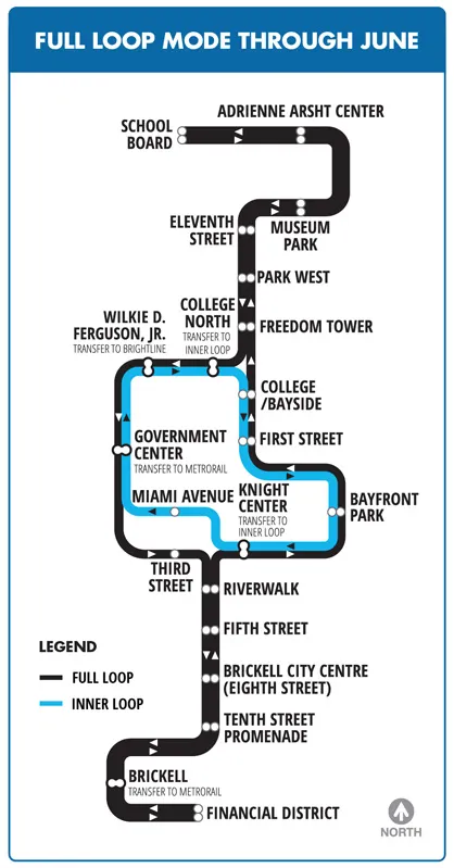 The Omni Loop (North): Extends north toward the Arts & Entertainment District. Use this for the Pérez Art Museum (PAMM), Frost Science Museum, and the Adrienne Arsht Center.