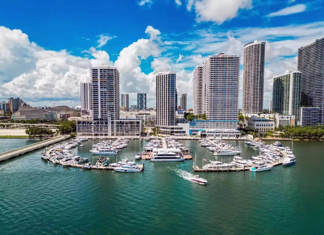 Miami Side Dock: Venetian Marina & Yacht Club (near NE 15th St / North Bay Shore Dr). Steps from the Adrienne Arsht Center Metromover station.