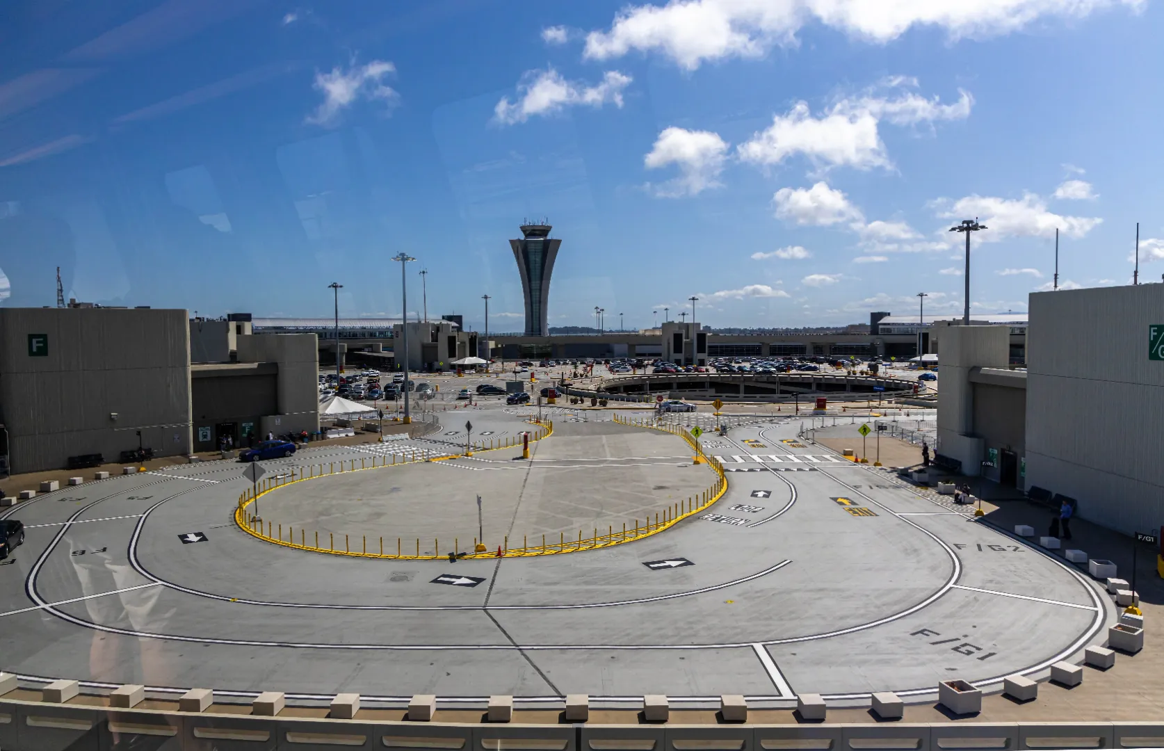 SFO is organized into a ring of four terminals connected by the AirTrain people mover.