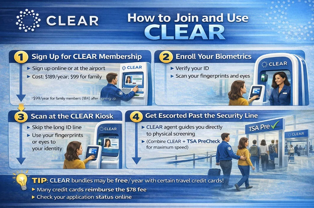 👉 Some airline cards (e.g., Delta or United cobrand cards) may offer discounted CLEAR rates (e.g., ~$169 instead of standard ~$189), though not a full reimbursement.
