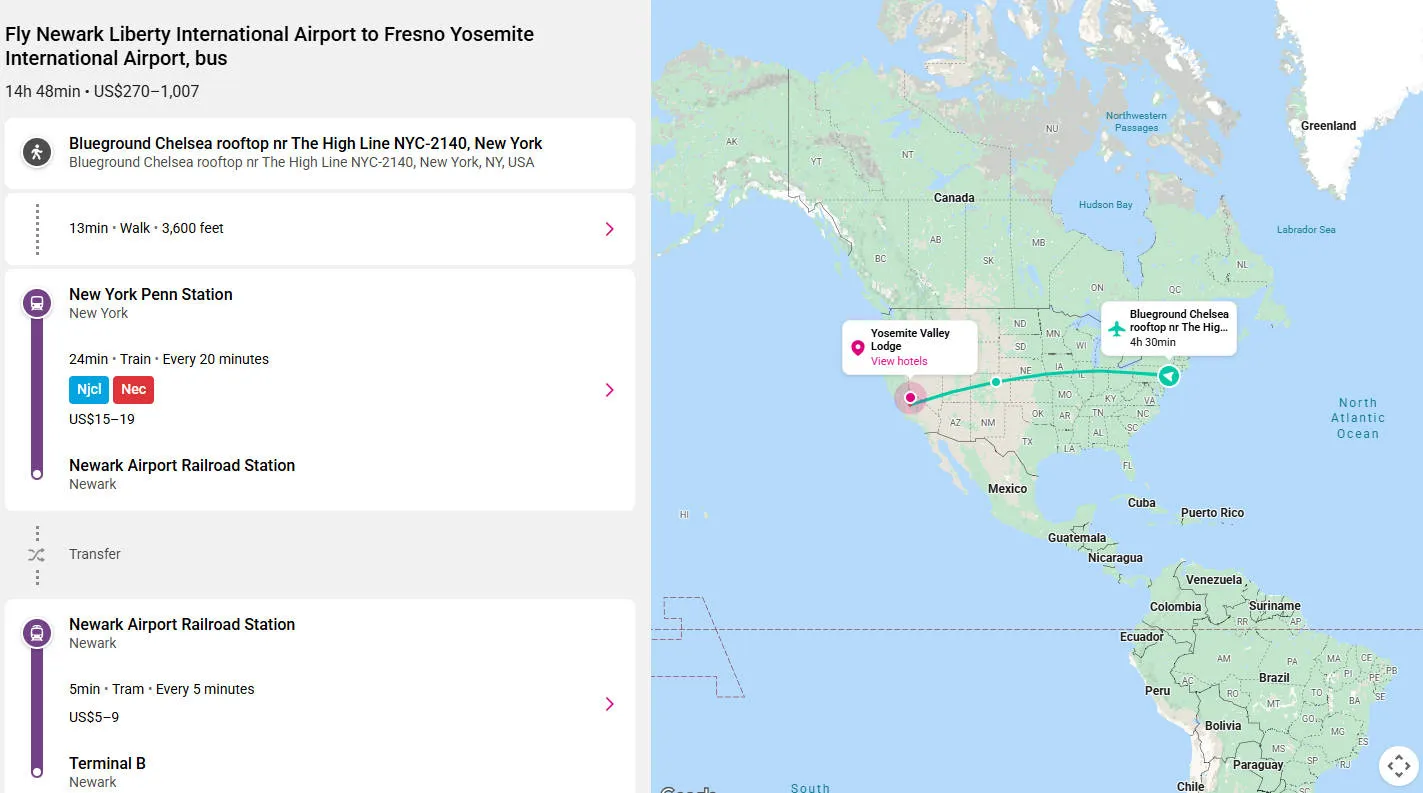 Action: Enter your exact starting point and final destination (e.g., "The High Line, NYC" to "Yosemite Valley Lodge").
