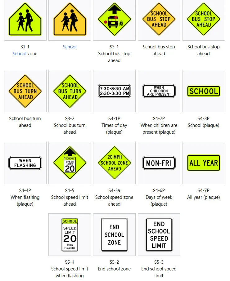 Optional Fluorescent Yellow-Green: Used for pedestrian or school zones
