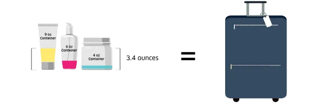Every liquid, aerosol, gel, cream, or paste must be in a container that is 3.4 ounces (100 milliliters) or smaller.
