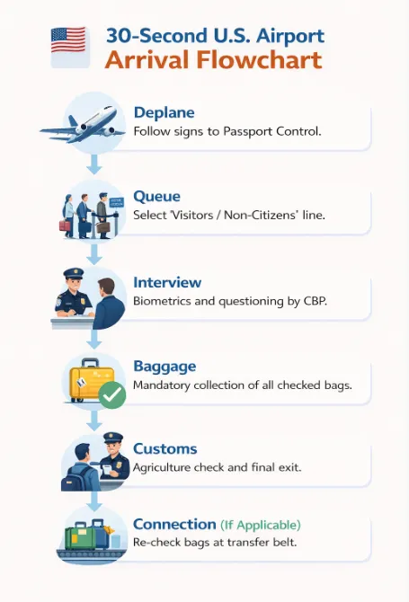 This handbook is meticulously crafted for first-time visitors who may be unfamiliar with the complex "hub-and-spoke" airport layouts and the rigorous nature of U.S. Customs, as well as non-immigrant visa holders such as those carrying B1/B2, f-1/M-1, or J-1 visas. It also serves as a vital resource for travelers facing language barriers by providing structured scripts and visual cues to navigate the entry process effectively. The primary objective of this guide is to move beyond basic travel tips to provide critical legal context regarding officer inquiries, ensure procedural precision from the moment you deplane, and ultimately reduce traveler anxiety through a clear understanding of the "why" and "how" behind each protocol. Please note that U.S. immigration laws and Department of Homeland Security (DHS) protocols are subject to frequent updates; therefore, this guide is for informational purposes and does not replace official government advice.