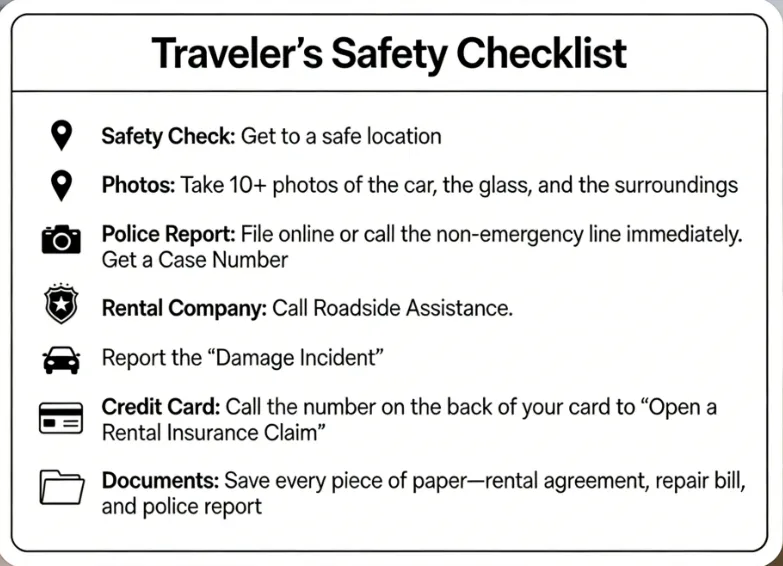 The 48-Hour Rule: Regardless of how busy you are, file the report within 48 hours. Waiting longer can look suspicious to insurance adjusters and may void your credit card benefits.