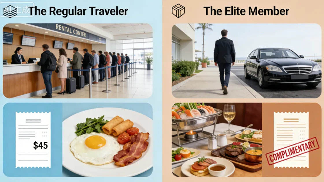 The "Breakfast & Lounge" Factor: With inflation hitting the F&B sector, a decent hotel breakfast in the U.S. now ranges from $30 to $50 per person. For a family of four, Elite status saves you $200 daily on food alone, not to mention the evening hors d'oeuvres and cocktails in the Executive Lounge.