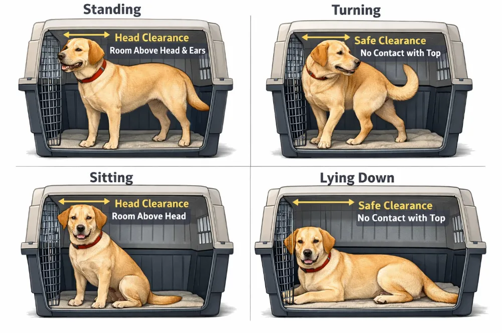 | One pet per crate | Adult dogs and cats must travel individually. Exceptions for young littermates are rare and airline-specific. | |